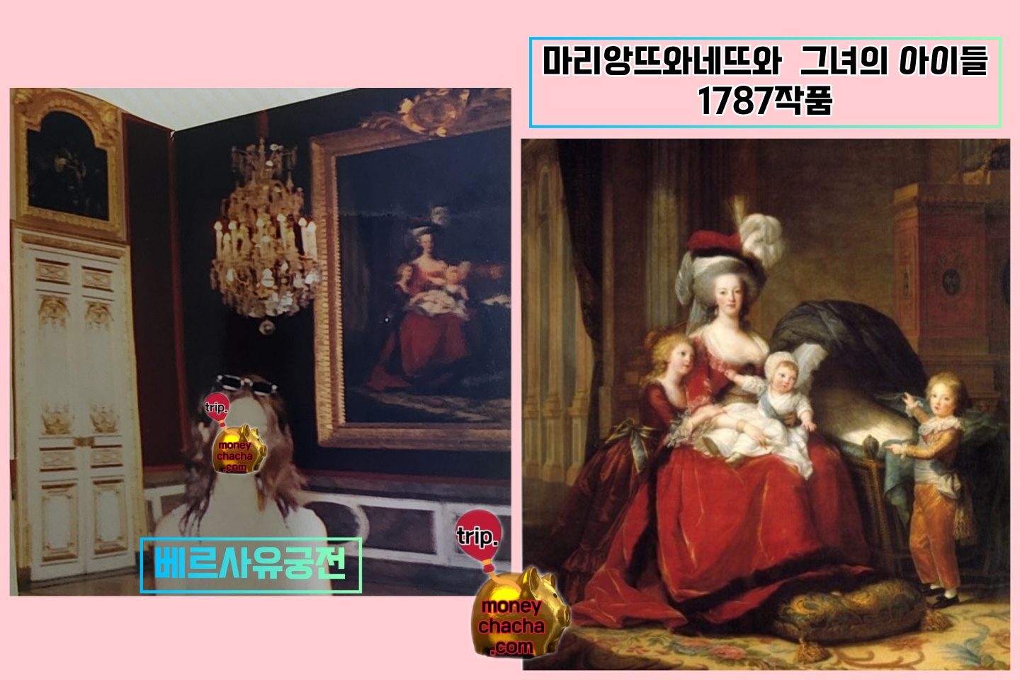 베르사유 궁전에서 유일하게 내 모습이 너무나 허술하게나마 살아남은 한 장의 사진입니다. 그러나 그 안에 베르사유 궁전의 대표적인 이미지 샹들리제.. 그리고 마리앙뜨와네뜨와 그녀의 아이들 작품이 남아 있으니 만족하기로 했습니다.